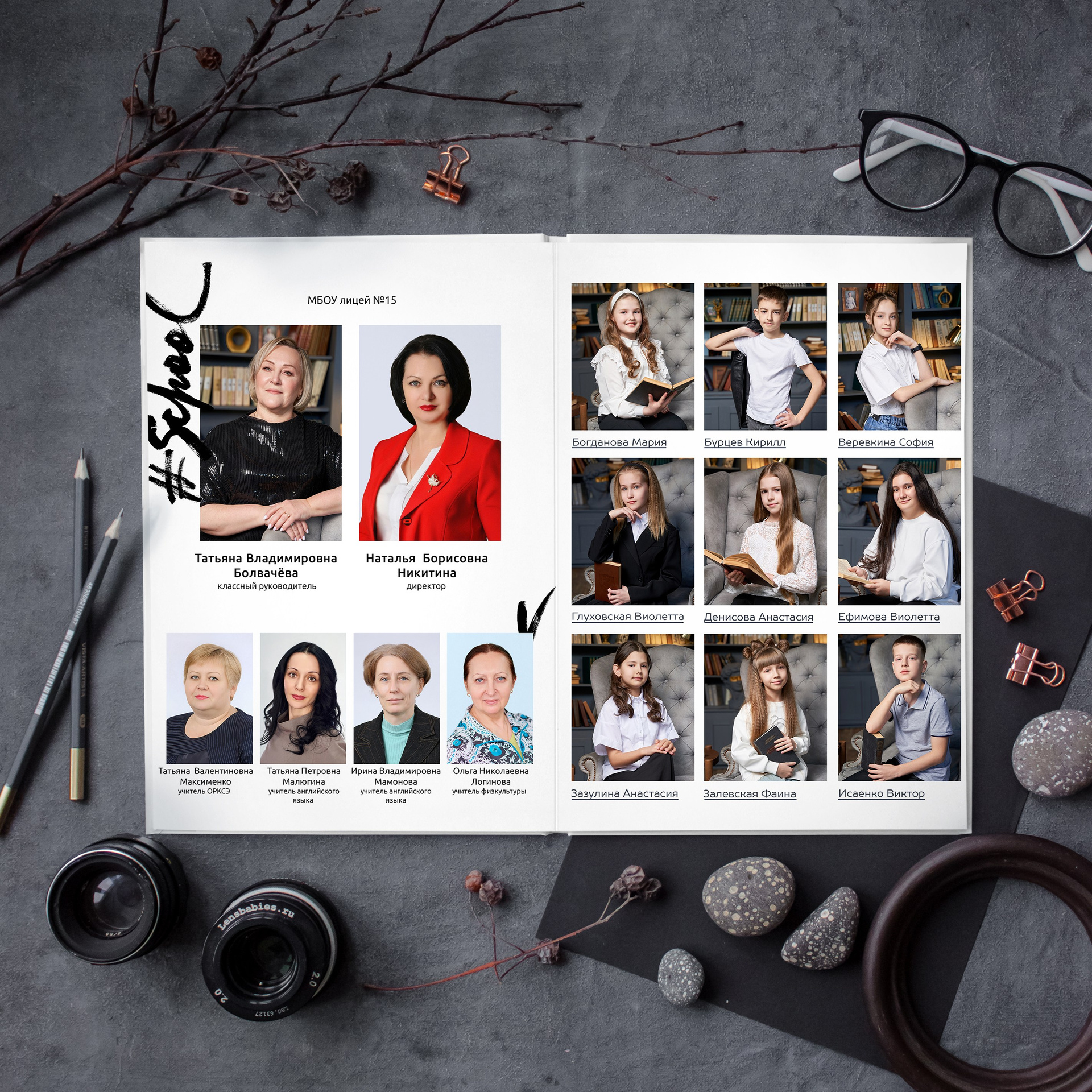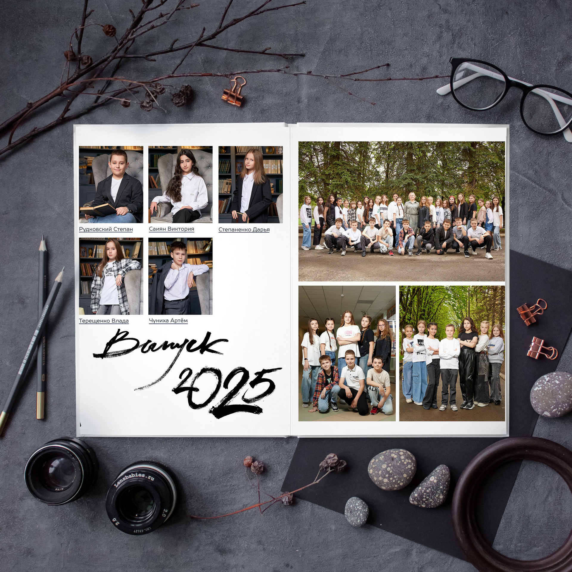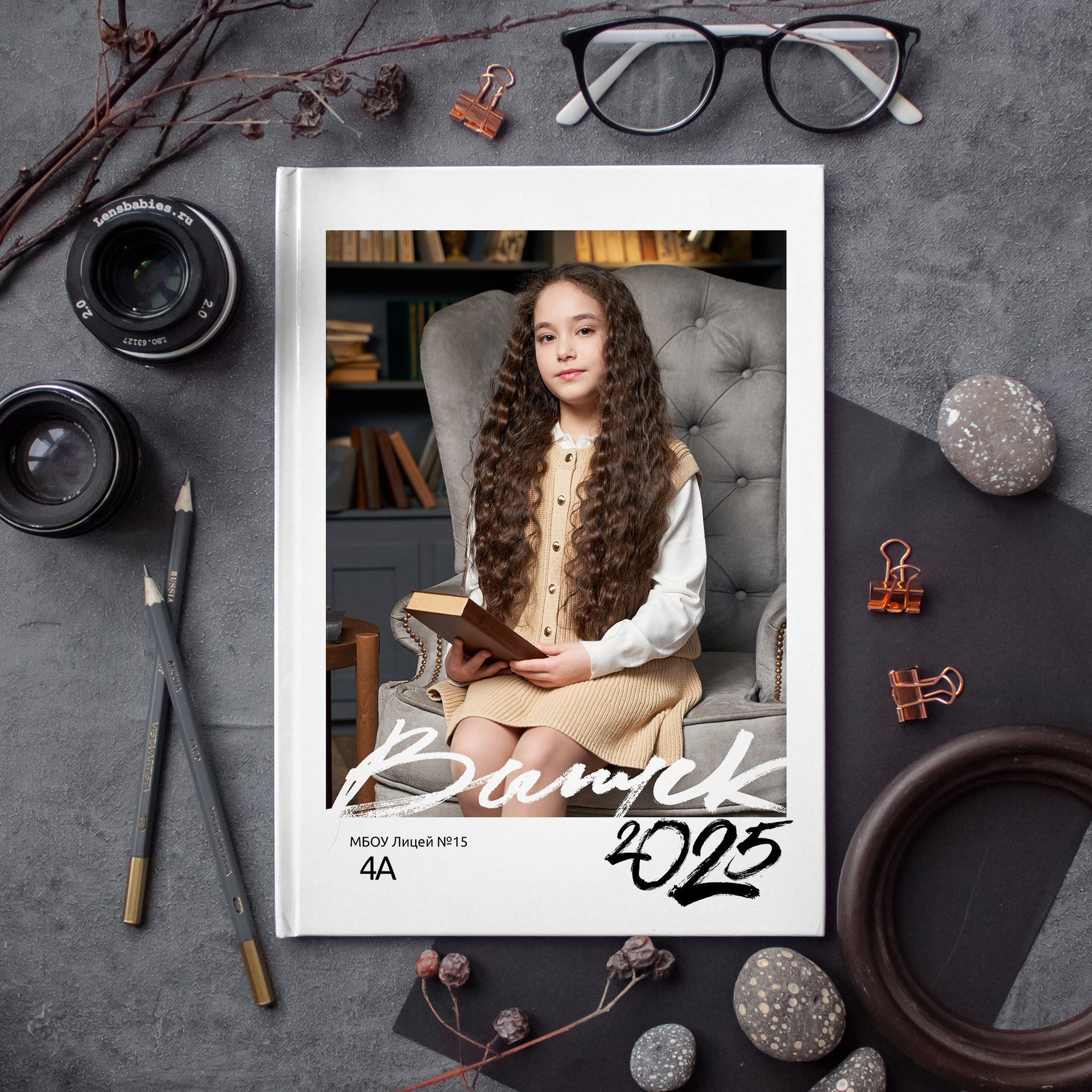 Самый выбираемый альбом для 4 класса. В нем твердая обложка и 10 твердых страниц.Все портреты снимаются в школе или студии (по выбору родителей), одна групповая фотосессия делается в фотостудии или на улице.